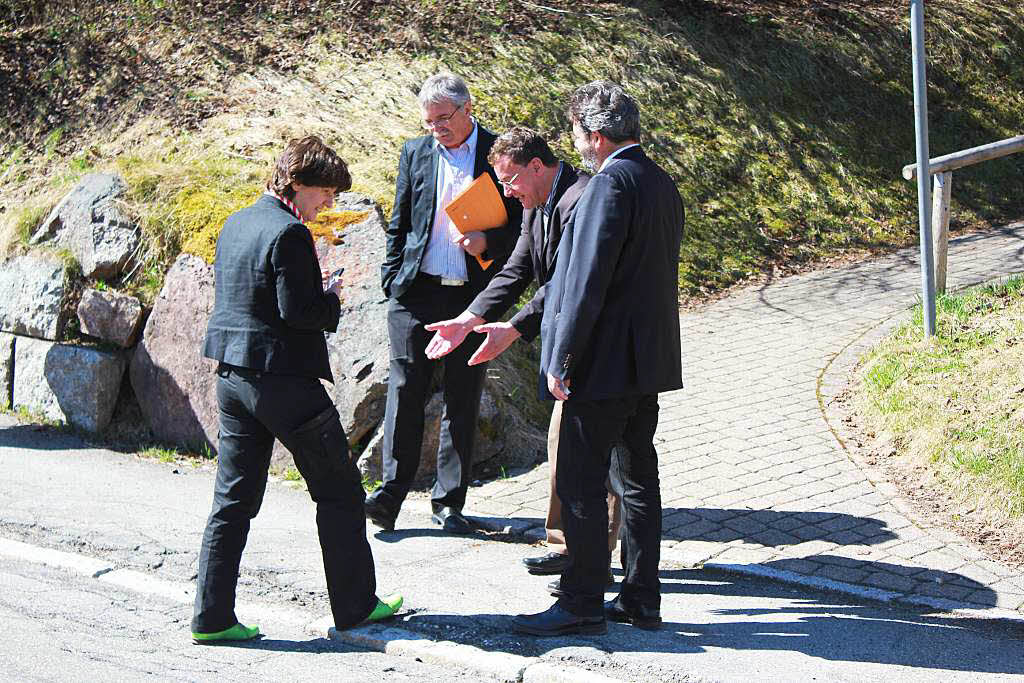 Eine Kurzvisite stattete die Staatssekretärin Gisela Splett der Gemeinde Eisenbach ab. Begleitet wurde sie vom Landtagsabgeordneten Reinhold Pix sowie von Otmar Haag, dem leitenden Baudirektor des Regierungspräsidiums Freiburg. Gemeinsam mit Bürgermeister Alexander Kuckes wurde jener Abschnitt der Ortsdurchfahrt begangen, dessen Ausbau ansteht. In Augenschein genommen wurde der marode Zustand der Straße wie auch der Gehwege.