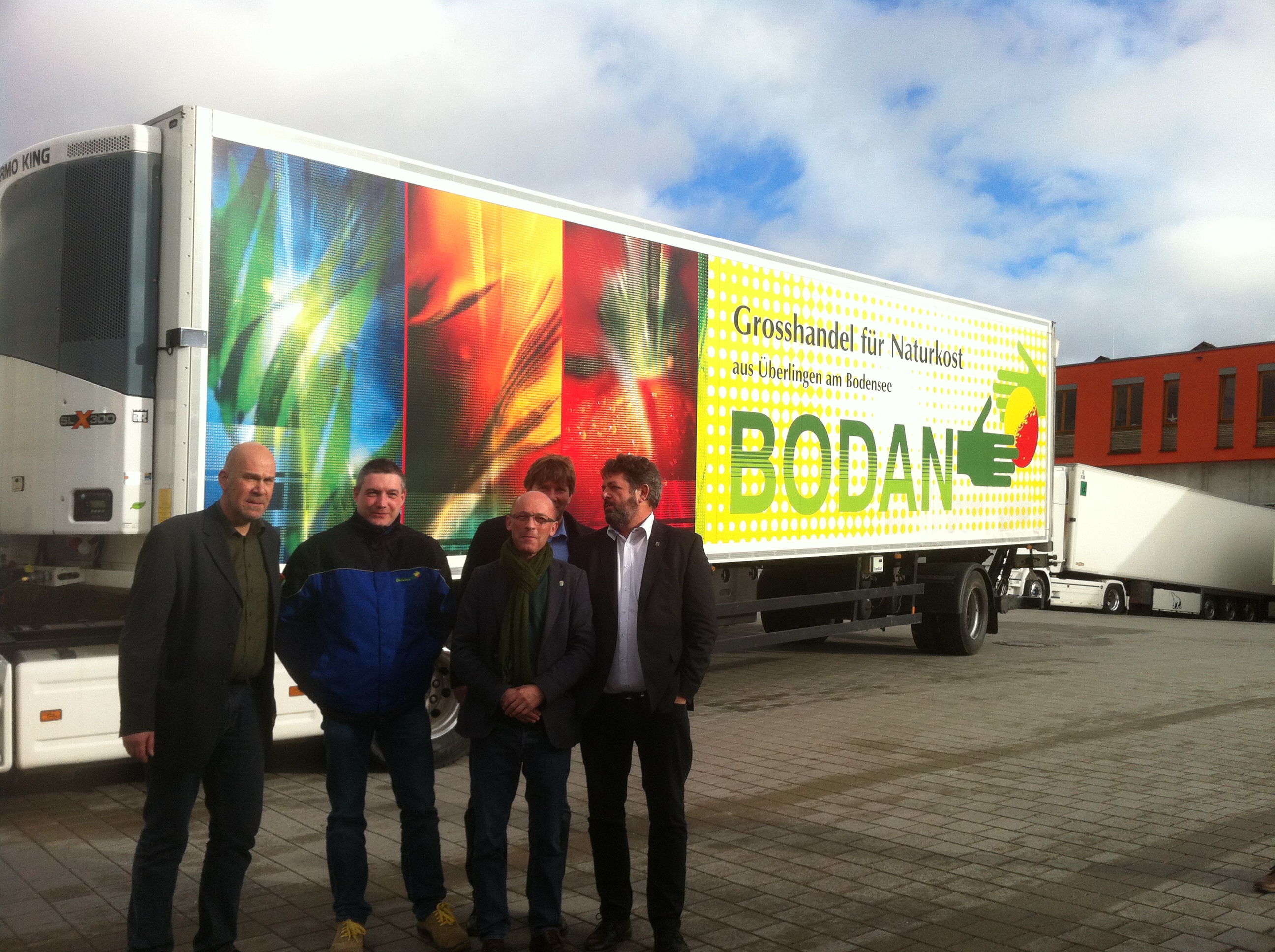 BODAN Großhandel für Naturkost geht in diesem Zusammenhang bereits seit geraumer Zeit mit gutem Beispiel voran. Das Unternehmen leistet seinen Beitrag zum Klimaschutz auf verschiedene Weise: So vermarktet es regional ausschließlich klimaschonende Lebensmittel aus kontrolliert biologischem Anbau und fördert dabei aktiv die Vernetzung der regionalen Wirtschaftskreisläufe, vom Erzeuger bis zum Endverbraucher. Bei seiner Logistik setzt BODAN auf eine decarbonisierte Lösung für Kühl-Lastwagen aus natürlichen Kohlesäurequellen, nach dem Motto „Das schont unser Klima und Ihre Ohren“.